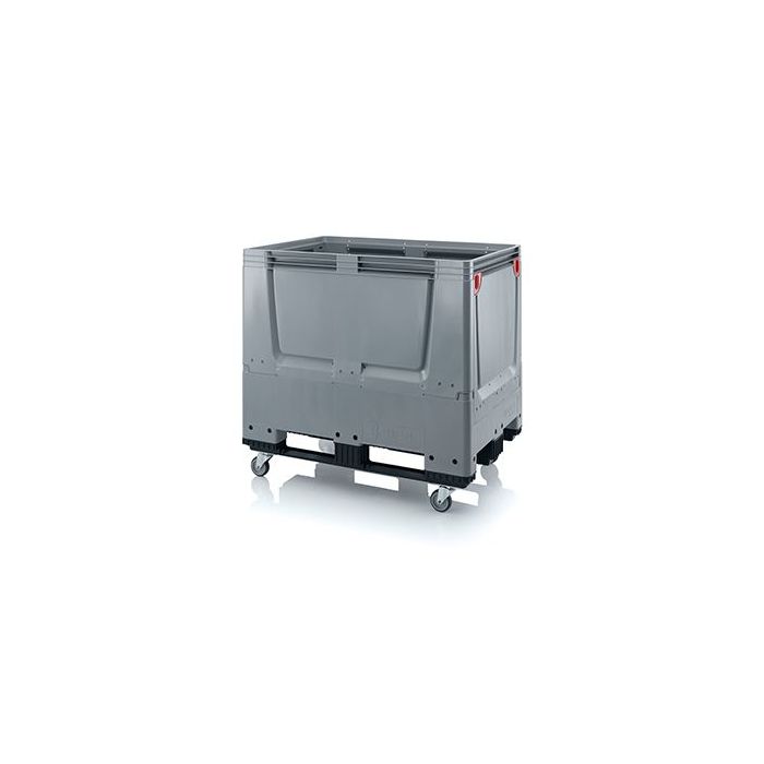 - Vouwbare Euro-palletbox met 4 inklapbare wanden op 4 zwenkwielen en 3 sleeplatten