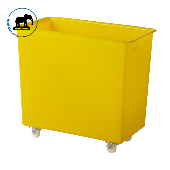 Robuuste kunststof transportwagens van NORAH Plastics voor universeel gebruik bij transport, opslag of productieprocessen. De verrijdbare bakken worden geproduceerd van eersteklas grondstof materiaal HDPE en worden uit één stuk gefabriceerd. Een stoot-, slagvaste constructie in een naad-, kierloos ontwerp met zowel buiten-, als binnenwerks rond en volledig gladde wanden, hierdoor zijn de bakken op wielen snel en grondig te reinigingen en uitermate gebruiksvriendelijk. Individuele opdruk zoals naam en logo zijn op aanvraag mogelijk – Geschikt voor poedervormig materialen, granulaat, onderdelen, wasgoed, grondstoffen, verpakkingen, levensmiddelen, afval en vloeistoffen; zoals Industrie, Handel, Retail, Commerciële sectoren, Horeca, Scholen, Gemeentes en Zorginstellingen.