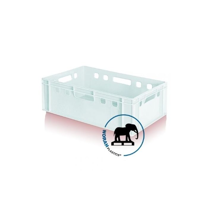 Productie krat voor het hygiënisch transporteren, wegen en opslaan van diverse vlees producten. De kratten worden conform DIN 55423-norm geproduceerd en komen hierdoor tegemoet aan de strenge eisen van het EHI. De vleeskratten E1, E2 en E3 zoals ook de pluimvee kratten E4 en E5 worden in de Europese vlees en pluimveeindustrie als poolkrat ingezet in een zogenoemde open-pool-systeem. In dit systeem koopt elke gebruiker, fabrikant of grossierderij zijn kratten naar eigen behoefte in. De kratten circuleren tussen de verschillende gebruikers en worden omgeruild bij levering. De kratten zijn fysiologisch gerust en 100% recyclebaar hierdoor goed voor het milieu. Uiterst stabiel op elkaar stapelbaar en compatibel met andere Euro-formaat stapelbakken, pallets, rolcontainers en transport dollies. Individuele opdruk zoals naam en logo zijn op aanvraag mogelijk – Geschikt voor verwerkende industrie, handel, retail, commerciële sectoren en horeca.